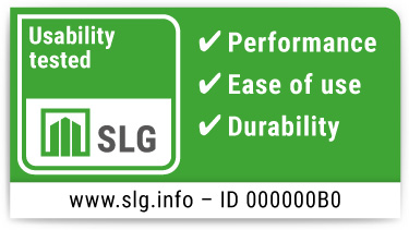 Our mark "Usability tested" (fitness for use tested) is awarded to products scoring a "very good" or "good" in the fitness-for-use test and furthermore, meeting all product safety requirements. The tests are performed according to product-specific SLG test plans.