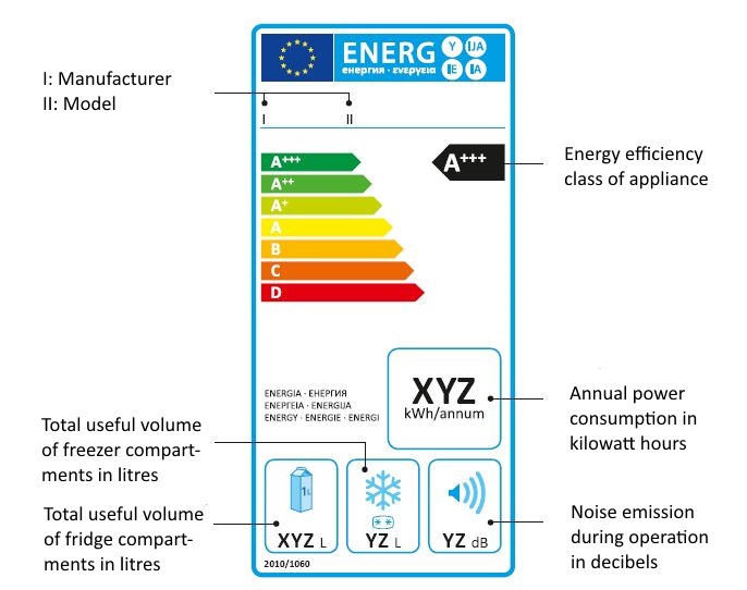 The Energy Labelling Directive 2010/30/EU and related delegated EU regulations determine labelling requirements for different product groups.