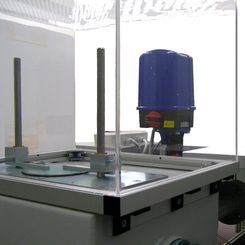 Die Teppichklopfeinrichtung dient der Konditionierung von genormten Prüfteppichen, die bei Staubaufnahmemessungen zum Einsatz kommen.