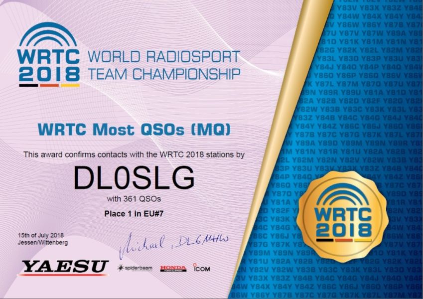 Im Juli 2018 fand die Team-Kurzwellenweltmeisterschaft der Funkamateure in Deutschland statt. In der Kategorie "Wer funkt mit den meisten Teilnehmern?" belegte die Klubstation der SLG den 1. Platz in Deutschland.